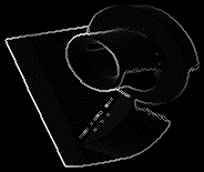 One application that can be efficiently implemented using 3DNow! is an image gradient calculation (edge detection), especially range image gradients. To illustrate how 3DNow! can enable efficient operations on Linux, we'll be looking at how the gradient calculation can be optimized for range and volume data. In an image collected on a 2-D grid, gradient is a measure of the local change of pixel values (e.g., pixel intensity) at a particular point; in a 3-D volume, gradient measures the difference of intensity between a voxel (volumetric element) and its neighbors. There are a variety of methods for determining the gradient. For an image collected on a grid, one way to compute the gradient is as the directional differences in value of the four immediate neighbors (to the north/south and east/west) of each pixel. When this difference is computed for the entire image, the result is that points that lie on the border between regions usually have strong gradient magnitudes. The gradient magnitudes can be viewed as an image—they look like a collection of region boundaries of the original image. The image in Figure 1 is a range image produced from laser-range data. In a range image, each pixel is a floating-point value which expresses the distance from the viewing plane of the corresponding point on the imaged object. We've displayed the image using intensities where brighter values indicate closer points. Figure 2 shows the computed four-direction gradient for the range image of Figure 1.