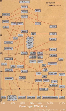 The really important thing is the fact that every one of these streams is used for web hosting, and that the UNIX+Linux systems total a remarkable 64% of all sites. In other words, just about two-thirds of the Web is powered by UNIX or Linux.