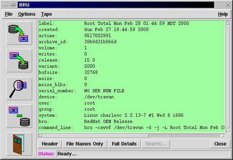 BRU is a modern replacement for tar (Tape ARchive). Many of the command line options for BRU are identical to those for tar, which means you can upgrade from tar to BRU fairly painlessly. In addition, XBRU, the GUI, is merely a front end: all XBRU does is build an appropriate command line and hand that off to the command-line executable.