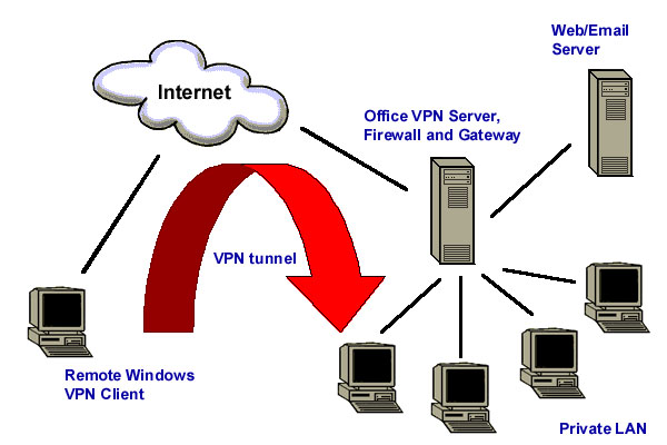 In Figure 1, the remote client is handed a real IP address from their local ISP. This remote client can log into the VPN server, and hence gain access to the private network behind the firewall. The remote client can then browse and use other network services on the private network as if it were a machine on that network.