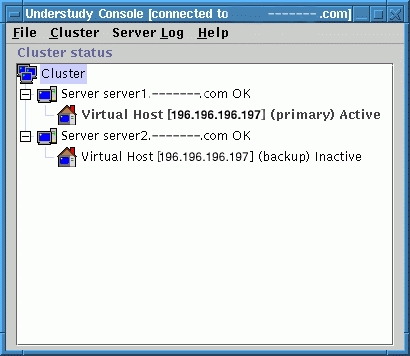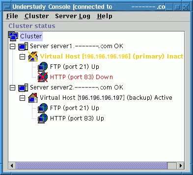 When a server goes down, it is marked inactive within the cluster and another server takes its place in seconds. When the server comes back up, it is immediately reintegrated into the cluster. By using Understudy in conjunction with a load-rotation scheme called “round robin DNS”, a site can also provide simple load balancing. Load balancing requires one additional IP address for each server in the cluster. Simple failover requires only one IP address for a “virtual host”, which is how users see the cluster.