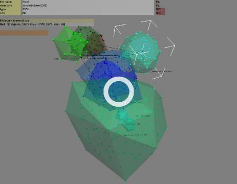 For the Oil Rig, the CAD application's native data structures (pipes, valves, walkways and so forth) are used in a similar way. When the application is called to render a tower, it can decide what would be an appropriate rendering for this frame—for example, it may decide to always render the tower, because it is an important landmark for navigation. Thus, the application can change representations dynamically to suit conditions. Similarly, applications with special lighting algorithms (see Figure 5), or atypical behaviours such as abstract information visualization (see Figure 6) use their own bespoke structures and algorithms to maintain real time performance.