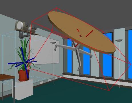 Recent Maverik developments include a novel force-field navigation algorithm to guide participants around obstacles, and an algorithm for probing geometry ahead of a user to test whether it can be climbed—for example, ladders and steps (see Figure 8). These algorithms integrate into Maverik, but at the time of this writing are released as separate beta sources for testing.