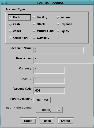 GnuCash offers more types of accounts than the other programs (see Figure 5). An account can be identified as a bank account, cash, asset, credit card, stock, liability, mutual fund, currency, income, expense or equity. Accounts can be children of other accounts, allowing you to create portfolios of funds. The ledger windows change slightly depending upon the type of account you are working with.