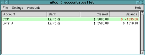 gAcc handles only checking and savings accounts. You can create categories to keep track of your transactions. At this time, it does not offer any reports or graphs, but these features are listed in the TODO file to be added in later versions. There is also no ability to import QIF files.