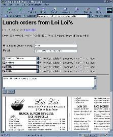 I knew roughly how I wanted it structured. There'd be a web page with a pull-down list with the restaurant menu, and, by clicking on a submit button, an e-mail with the person</#146>s order would be sent to the nominated lunch organiser.