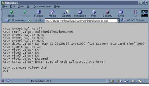 Write the CGI script with Python, which is distributed with the Red Hat Linux distribution (see https://www.python.org/). After consulting the Python documentation, which also came with the system, my first script looked like the one shown in Listing 3. It is essentially a cannibalised version of an example found in the Python documentation. To make use of this script, you'll need to point the CGI script specified in the ACTION statement in the HTML file to this script instead. That is, change the cgi script specified in the ACTION statement from lunch.cgi to first.cgi.