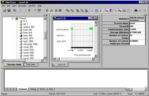 I had some problems getting TimeTrace to display a graph of the racer and rolling sample programs, so I sent a support request e-mail. TimeSys seemed to be going through some growing pains, and it took several days to get a response. Once e-mail contact was made, TimeSys support staff worked with me on resolving the problem.