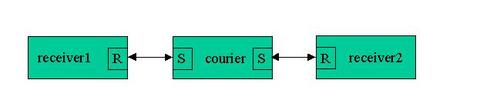 Occasionally it is necessary in a design for two receiver processes to exchange messages. The courier construct illustrated below is a good way to accommodate this requirement.