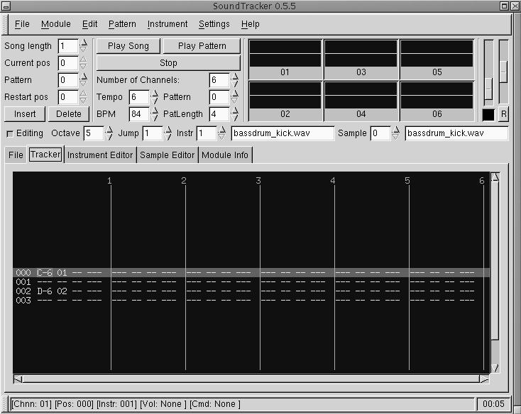 As of version 0.5.5, the documentation for SoundTracker consists of a single README file, but little more is needed. Trackers all follow a similar design, and the reference materials found on the United Trackers and MODPlug Central sites will help you understand the basic use of almost any tracker.