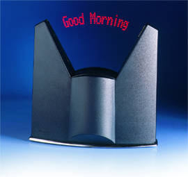 Lineo's real-time clock demo, you've heard of real-time clocks, but this one was different! It's a bit hard to describe, so please bear with me. Fantazein makes a clock that “projects” the time via a set of LEDs on a wand that oscillates back and forth (see Figure 1 and 2). The LEDs are modulated at precisely the right rate to show the time, as if projected in space, as the wand sweeps back and forth. Okay, read the explanation on their web site (www.fantazein.com/how.html)—but hurry back!