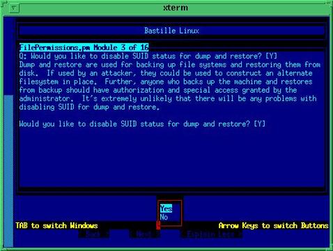 The Perl scripts that comprise Bastille Linux are quite intelligent and make fewer assumptions about your system than they did in the days when Bastille was meant only to be used on fresh installations of Red Hat. Your system need not necessarily be either a “clean install” or even Red Hat for Bastille to work, thanks to new functionality in version 1.1.x that transparently gleans a good deal of information about your system before making changes to it.