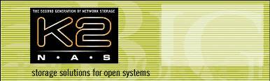 K2 NAS from Big Storage, Inc. is an enterprise-grade network attached storage device with redundancy features at every level, including integrated network and storage processors. K2 scales from one to forty terabytes and comes with dual redundant server processors, hardware RAID controllers, snapshot software for archiving and journaling filesystems. The system can be plugged directly into the existing network with a quick setup. A web-based graphical interface allows configuration and monitoring from any client, and cross-compatibility supports Windows98/2000, Mac and UNIX.