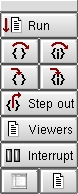 KDevelop provides most of the required basic debugging functionality, such as basic execution, next line and program interruption. The user can activate a floating debugging toolbar for easier debugging command access (see Figure 10). In the tree views, the variable tree tab displays the currently available variables.
