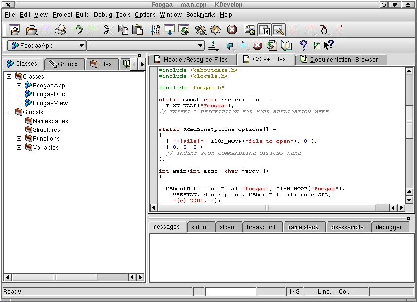 Because KDevelop is an open-source program, these missing or incomplete features may not be such problems after all. The KDevelop team is continually striving to improve the IDE, and if a feature is really wanted, implement it yourself and be part of the KDevelop team.