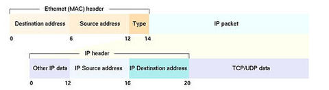 Let's briefly comment on this code; lines 0-1 and 6-7 verify that the captured frame is actually transporting IP, ARP or RARP protocols by comparing their protocol IDs (see /usr/include/linux/if_ether.h) with the value found at offset 12 in the frame (see Figure 1). If the test fails, the packet is discarded (line 13).