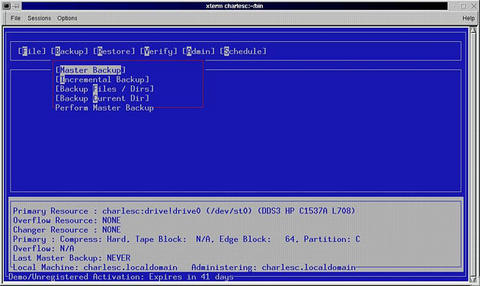 Naturally, the first thing I tried to do was a small test backup of about 9MB using my /etc directory. When I first tried this, the backup failed. Possibly the scan for sparse files affected the SCSI host adaptor. In any case, once I rebooted my system, I got successful backups on both of my tape drives.