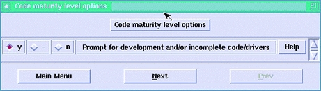 cd /usr/src/linux make xconfig (or menuconfig)We need to enable two options in the kernel configuration. First, go to Code Maturity Level and enable development/incomplete code/drivers: