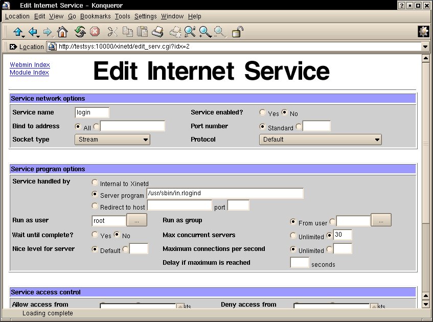 Here's a screenshot of Webmin in action, editing the rlogin service.