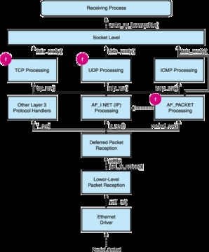 From that moment on, each packet entering the machine and going through the usual receive procedure will be intercepted during net_rx_action() execution and passed to the PF_PACKET receive function.