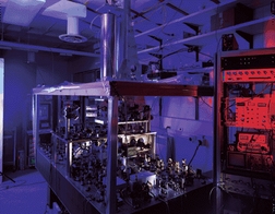 The National Institute of Standards and Technology (NIST) has a lab in Boulder, Colorado, devoted to running atomic clocks and providing official US time. In this lab, the NIST-F1 cesium fountain atomic clock provides a time reference with a precision of 2 × 10-15 (two parts per millionth of a billionth) by counting the vibrations of cesium atoms at about 9GHz. An even better clock is in the works. It will measure the resonance of a single mercury ion at about 100,000 times that frequency, and it will provide a thousand-fold increase in precision.