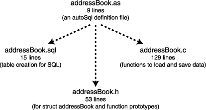 would end up generating 393 lines of bug-free (I think!) C code and 14 lines of SQL for the investment of 33 lines of specification. (Refer to Listing 2 for the complete autoSql grammar.)