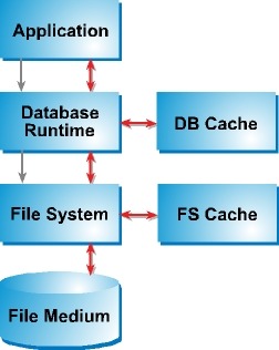 Due to the performance drain caused by physical disk access, virtually all traditional DBMS software incorporates caching to keep the most recently used portions of the database in memory. Caching logic includes cache synchronization, which makes sure that an image of a database page in cache is consistent with the physical database page on disk. Cache lookup also is included, which determines if data requested by the application is in cache; if not, the page is retrieved and added to the cache for future reference.