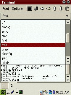 The problem of packaging applications for Linux PDAs was solved when the first versions of Linux running on the Compaq iPAQ appeared. An ipkg package is basically a .tar.gz file with some basic control information. If you want to install an application, type: