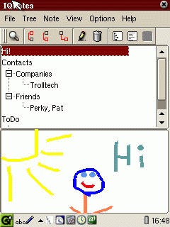 drawpad and IQNotes (iqnotes.kybu.sk) are daily companions. drawpad (Figure 3) lets you draw something on your Zaurus screen when you can't type, and IQNotes (Figure 4) keeps text notes and sketches in a convenient hierarchical tree.