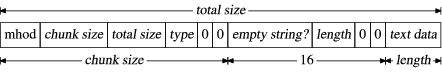 Figure 5 contains a diagram of our theory for the basic building block of the file format. When we change our validation program to use a 4-byte number for the chunk size, the test is successful for all non-mhod chunks.