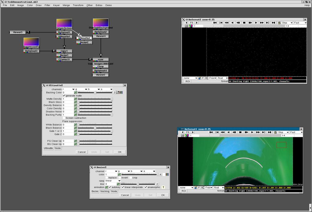 Figure 3. Adjusting a green screen Ultimate composite in NUKE while inserting stars into spacecraft cockpit window.