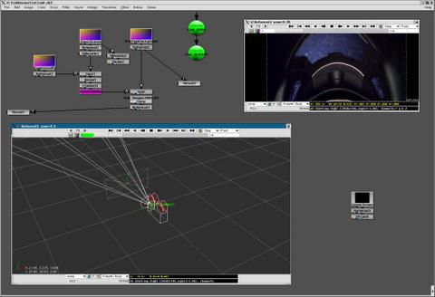 We can build a complete 3-D scene in NUKE then refer to that in a 3-D package like Maya and vice versa. A 3-D scene can be created and rendered in Nuke3, complete with lighting, texturing and shader support—diffuse, Blinn and Phong are built-in. There's a complete 3-D subsystem in NUKE. That's a trend in all 2-D packages. 2-D packages are more and more turning into 3-D packages.