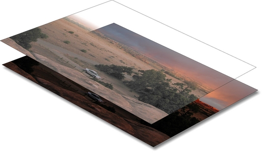 Layers can be combined in various ways to produce a single image, as if you were looking through the top layer down to the bottom. One way of doing this is to reduce the opacity of part or all of the upper layers. The opacity of a layer can be changed from 100% (opaque) to 0% (completely transparent) or anywhere in between. It also is possible to make parts of the same layer have different opacities (or levels of transparency, if you prefer to think of it that way). Again, there are many ways to do this, but one of the most flexible ways is with a layer mask. A layer mask can be added to a layer and becomes one of its attributes. It is a gray-scale image that is the same size as the layer. The layer mask has the effect of varying the opacity of each pixel in the layer according to each corresponding pixel value in the mask. A black pixel in the mask makes the corresponding pixel in the layer completely transparent. A white pixel makes it completely opaque, and any value in between calculates a percentage of opacity between these two extremes.
