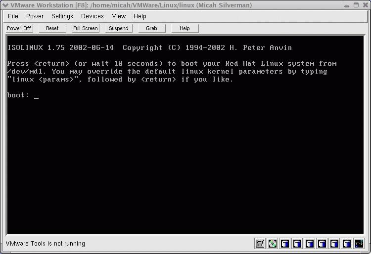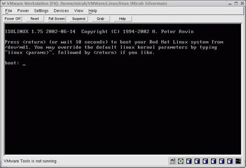 During the Red Hat 8.0 install, I used Disk Druid to set up the partitions as outlined above and illustrated in Figures 2 and 3. I used the GRUB boot loader and installed the boot image on /dev/sda. For testing purposes, I installed only about 500MB worth of packages on the VM.