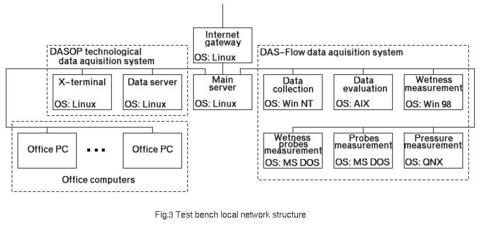 During our joint project Tanja with Alstom Power, the information infrastructure of the test bench was renewed. Now it includes three main parts: 1) a high-accuracy scientific measuring system, called Data Acquisition System for flow path measurement, or DAS-Flow; 2) a technological measuring system, called Data Acquisition System for Operational Personnel, or DASOP; and 3) workstations for researchers and engineers.