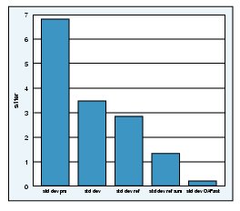 In our case, profiling some sections of the code indicated that a considerable amount of time was being spent calculating statistics of data collected off the machine. I reviewed the code related to these statistics calculations and noticed that a function to calculate standard deviation, std_dev, was used frequently. The std_dev calculation caught my eye for two reasons. First, because calculating the standard deviation requires calculating the mean and the mean of the sum of squares for the entire measurement set, the na�e calculation for std_dev uses two loops when it could be done with one loop. Secondly, I noticed that the entire data array was being passed into the std_dev function on the stack rather than being passed as a reference. I thought these two items together might indicate a performance issue worth examining.