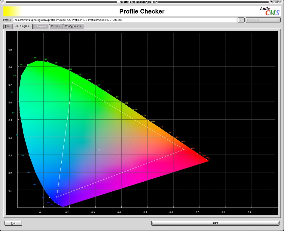 In addition to a well-adjusted monitor, a consistent lighting environment is critical for accurate color viewing. Dim light is best, and by lighting your room with 5,000K daylight-balanced compact fluorescents, the white of a piece of paper should look very close to the white on your display. ISO 12646 goes into great depth on providing further guidelines on ambient viewing conditions. Bright colors in your environment alter your color perception, so watch out for brightly colored nearby walls, as well as bright backgrounds and colored windows in your Linux environment. My Linux desktop uses a plain gray background and black and white window decorations.