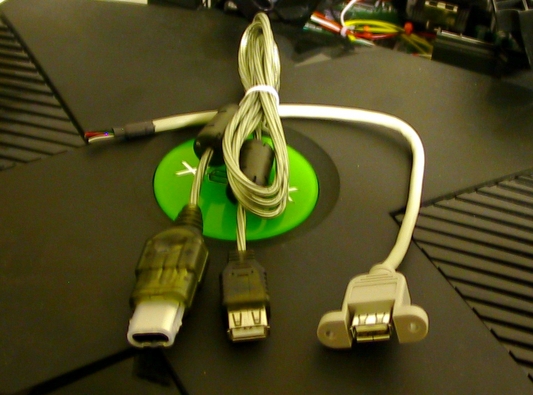 Figure 4. A USB adaptor cable can be built easily by using an XBox controller extension cable and the USB female connector on the right. You also can buy prebuilt cables like the one on the left.