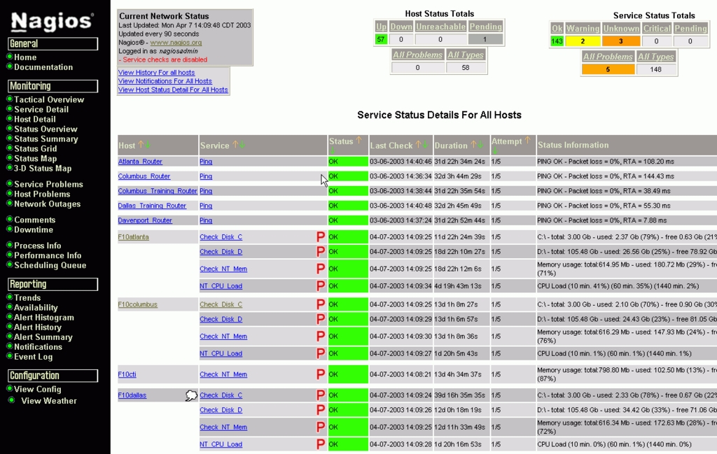 We still had the financial constraint, which meant the OpenView class of products was out of our range. Because we were running NetSaint in a production environment, we decided to go ahead and start looking into a NetSaint solution for the Ag Division. The first thing I learned was if you stop following the Open Source community for a while, a lot will have changed when you come back. In this case, NetSaint was no more; its descendant is Nagios (www.nagios.org). For the most part, Nagios is the next step in the NetSaint evolution. I confess to some sadness seeing the penguin removed from the main page, but I got used to it and moved on.