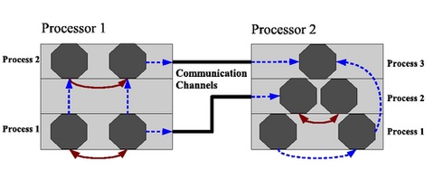 Figure 2 illustrates a typical distributed application based on an event-driven model. It is composed of many software components, and a process represents one layer of the application. In distributed applications, a lot of local and remote communications are engaged either at the same level or at a different level.