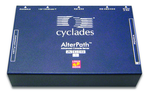 The AlterPath ACS1 is a compact single-port console server used to connect serial devices to a TCP/IP network. Typical applications include branch office management, retail automation and IP enabling of legacy serial devices. Dual PCMCIA slots allow for enhanced functionality with support for many interface cards, such as Ethernet, modem (V.90, GSM, CDMA and ISDN) and wireless LAN. The ACS1 uses PowerPC dual CPUs to transfer data from a 10/100Base-T Ethernet interface to the RS-232/RS-485 serial interface and back, enabling communication between the serial device and the network. The ACS1 supports SSHv2 (Secure Shell) for security in data connections.