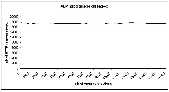 Figure 6. AEMhttpd, a single-threaded HTTP server used to make scalability measurements of the AEM internal implementation. Here we have performed 100 active connections for each sample.