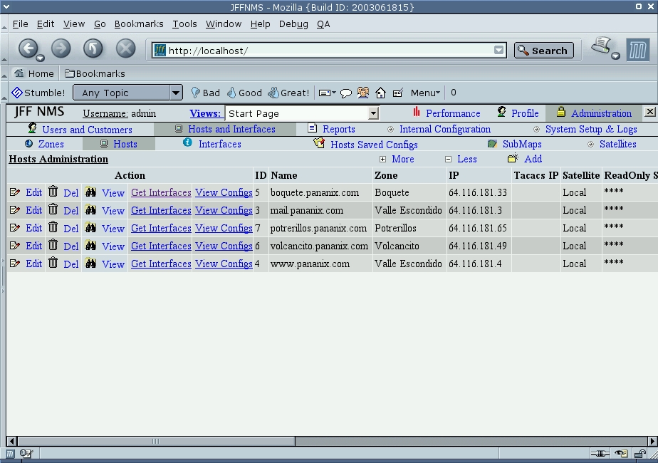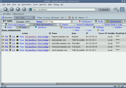 The “just for fun network management system” really is for more than just fun. It watches your systems and graphs activity of most any sort that can be ascertained with SNMP. It stores the data in an SQL database. It also can use tftp to back up configurations for devices such as Cisco routers or wireless access points. Requires: Apache, PHP with MySQL or PostgreSQL, SQL server, SNMP, RRDTool and tftp (optional).