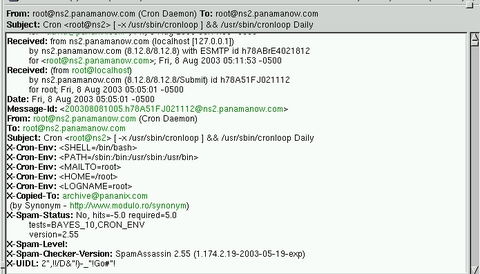 I can't count the number of times I've been asked about a way to copy all (and I do mean all) messages passing through a mail server, both incoming and outgoing, to a file or database. Well, synonym is a sendmail milter program that will do exactly that. Every message processed by sendmail is copied to a user. It also adds X-Copied-To: headers for anyone to see that the message has, in fact, been archived. Requires: libpthread, libsm, libsmutil, libmilter, sendmail with milter and glibc.