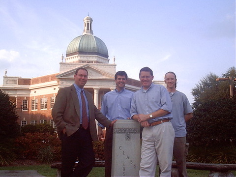 OSSI members John Weathersby (front) and Richard Kuebler (middle) pause with Mark Goodman (left) and Matthew Schick (right) from the University of Southern Mississippi as they tour campus. The Administration building stands in the background.