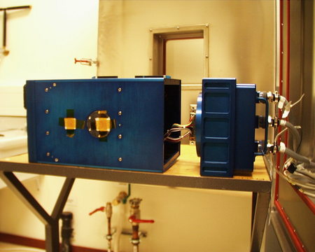 Figure 6. The DSI insert for solidification experiments at COMAT in Toulouse (France). The hole at the top is for accessing video cameras once located inside the Declic facility.