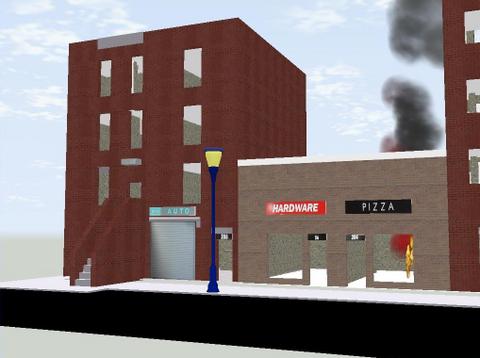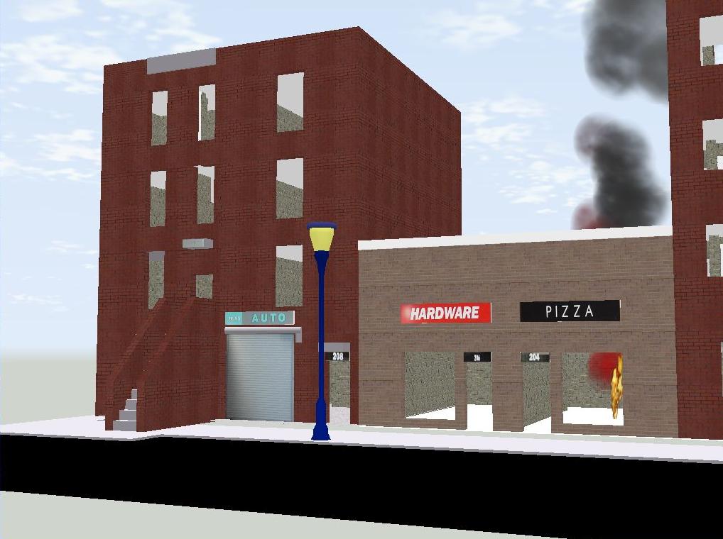 The New York Fire Department (NYFD) recently built a multimillion-dollar extension to its training facility at Randall's Island (RI), near Manhattan. This facility is a one-block re-creation of typical architectures found in the five boroughs. Among the buildings are a brownstone, tenement, pizza shop and auto parts store. In September 2003, a team from the Naval Undersea Warfare Center (NUWC) was invited to tour this facility and photograph it so they later could create textures for the models being developed for the NYFD.