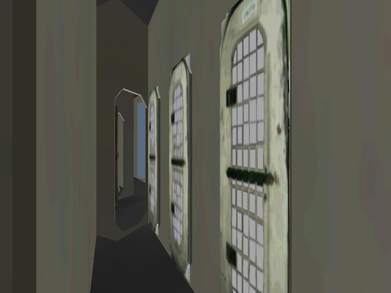 The underlying software used to control the environment was a modification of work done for my thesis research while working at the Naval Research Laboratory. With the help of Rob King, we created the gestural interface needed to navigate through a true 3-D synthetic environment. Using this methodology, the navigation is accomplished by pointing in the direction the user wants to travel and pressing a button to move. The navigational algorithm is accelerative, which means the longer the user depresses the forward button, the faster the user moves through the environment.