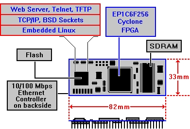 SSV Embedded Systems releases the ADNP/ESC1, an FPGA-based DIL/NetPC built specifically for embedded softcore computing (ESC). An Altera EP1C6F256 Cyclone FPGA is used in the ADNP/ESC1 instead of an MCU. The ADNP/ESC1 offers a 32-bit NIOS-Softcore processor with two UARTs, 20-bit PIO, SPI, JTAG, an IDE CompactFlash interface and a 16-bit expansion bus with chip select outputs and interrupt inputs. The module includes 12MB of SDRAM, 8MB of Flash and a 10/100 Ethernet controller. A starter kit is available for system integration. It includes a networking prototyping board, sample applications and the uClinux OS, based on the 2.4 kernel.