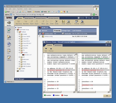 Tripwire for Network Devices 3.0 is multivendor network configuration management software that centrally manages, monitors and reports changes made to network components. In addition to heterogeneous device support, Tripwire offers version control, in which an archive of configurations for every device is maintained and updated automatically whenever change is detected. Tripwire for Network Devices can scale to tens of thousands of nodes that can be organized in logical groups. It integrates with user authentication, access and accounting applications to manage passwords and user access rights. Tripwire also offers baseline restorations, real-time integrity scans and proof of conformance.